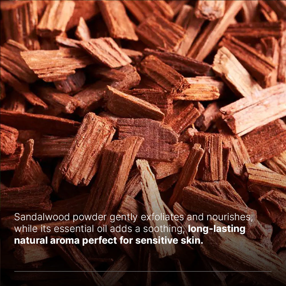 Sandalwood powder is a natural exfoliant and therapeutic additive valued for its gentle texture, aromatic properties, and skin benefits. Sandalwood essential oil adds a long-lasting, pleasant scent to soap without synthetic fragrances, ideal for sensitive skin.
